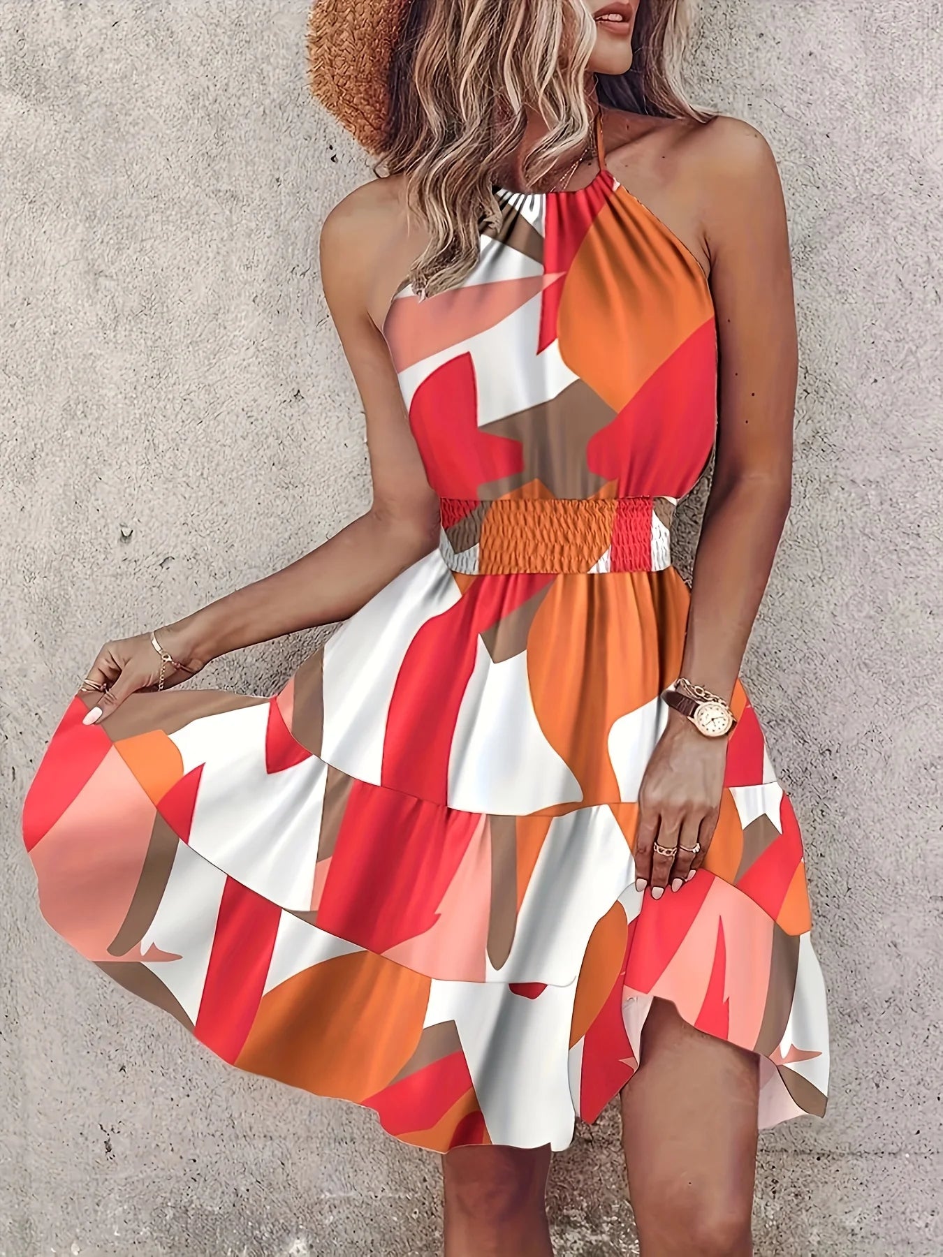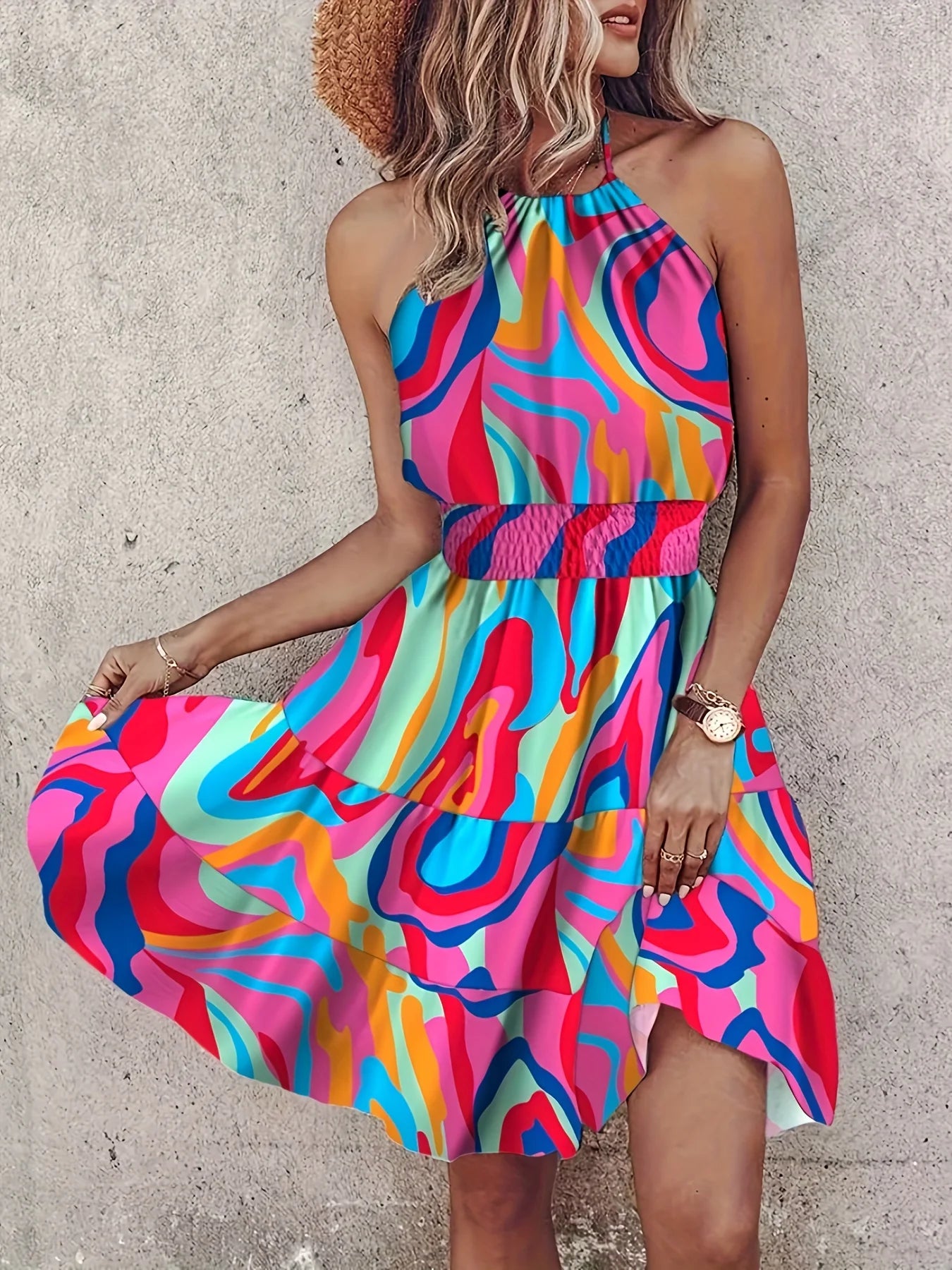Plus Size 2024 Fashion Casual Vacation Women's Dress Elegant Sexy Off the Shoulder Halter Strap High Waist A-line Mini Dress